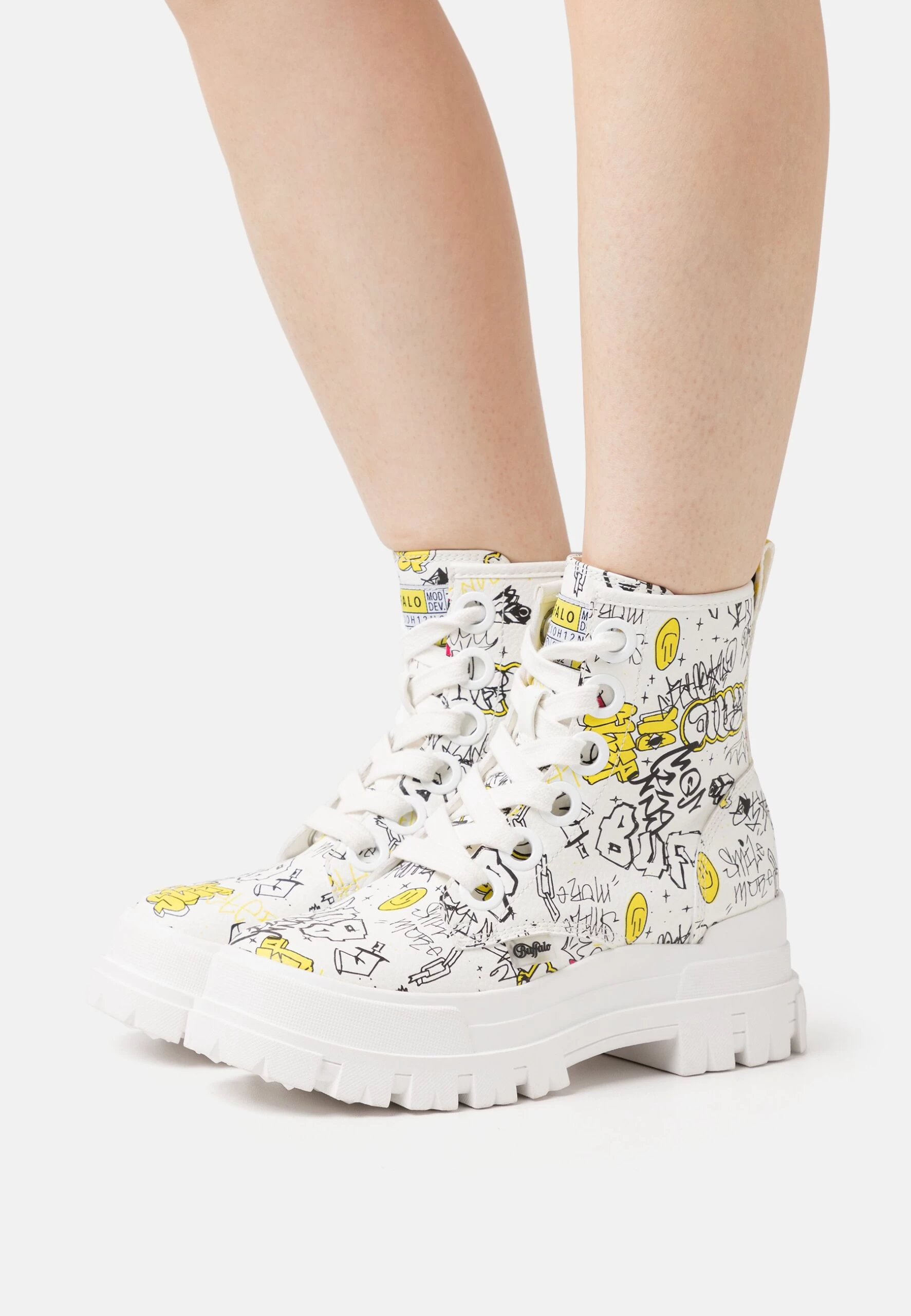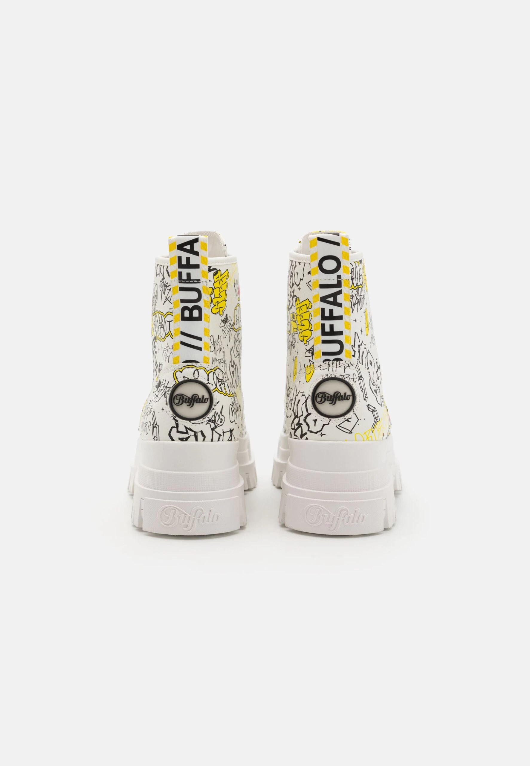 Buffalo Aspha – Platform Ankle Boots – White Graffiti